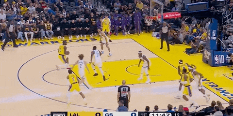 霍福德瞅准时机,妙传弯道漂移切入的库里,一个电线杆过弯拉杆反篮打成2+1