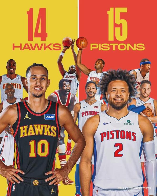 接下来,76人和活塞这两支队史悠久的球队,都曾拥有过15位状元球员。其中76人自己选中了四位状元,包括艾弗森、西蒙斯、富尔茨。活塞也选中了3位状元,包括已经成长为巨星的康宁汉姆。
