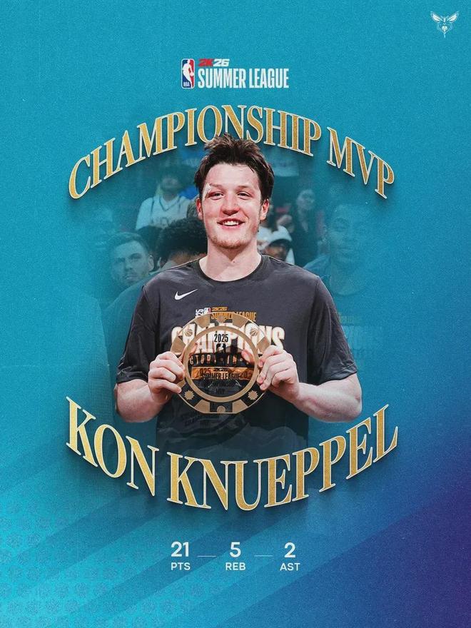 他叫康-克努佩尔,今年20岁,休赛期刚给黄蜂赢了一个夏联冠军。