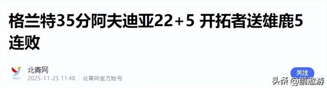 北青网(格兰特35分阿夫迪亚22+5 开拓者送雄鹿5连败2025.11.25)